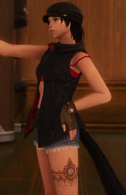 Bereft of memories that she would not recover fully until several years later, language, and holding barely a shred of sanity. She was found, and taken into the custody of the Yellow Serpents unit of the Order of the Twin Adder. Whom though keeping a watchful eye upon her, helped her back to health.She took the name of Tessa Jhaloh, a name not truly hers any longer, and began a new life within Gridania. Many years and battles later, she took up the katana; Training at first on her own, then with the aid of Meta Xi of the free company Dragon Army to which she belonged, and further still as she travelled to Hingashi. To seek the tutelage of eastern Samurai.Now Tessa serves as a commander of the Fang Battalion of Dragon Army Free company, a job she still is having some difficulty adapting to, leading adventurers is very different from military life. However, it perfectly suits her, fighting alongside trusted friends, rather than strictly disciplined soldiers.